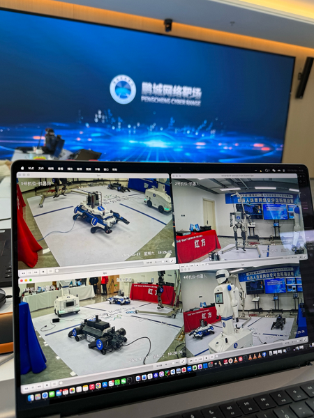 长期深耕特种作业领域、参与国家级重大保障任务的四足机器狗、已在城市一线环境中开展常态化巡逻的巡检机器人,作为实战靶标,接受了全国64支战队在线上发起的高强度网络攻击。演练验证了机器人自主安全策略的有效性、远程监控劫持与感知数据干扰等威胁的系统防御能力、高强度指令对抗下的稳定性,以及对“非法指令”的过滤能力等。