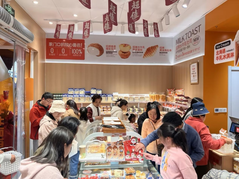 在产品端,孙北北面包坚守“0防腐剂、0反式脂肪、100%动物奶油”的“正义面包守则”(注:全品牌商品中防腐剂脱氢乙酸钠、山梨酸钾、丙酸钙检验含量为0,全品牌商品符合GB28050中人造反式脂肪0含量声称要求),将招牌水牛乳吐司、爆浆泡芙、芝士安格斯牛肉卷、水牛乳蛋挞等爆款产品,通过中央厨房标准化生产,每日凌晨5点配送到店,保证产品新鲜度;在运营端,打造“2人即可开店”的轻运营模式,人工成本低、水电能耗低、房租成本低,通过数字化管理系统实现订单处理、库存管控、营销活动的全流程在线化,大幅降低加盟商的运营门槛。