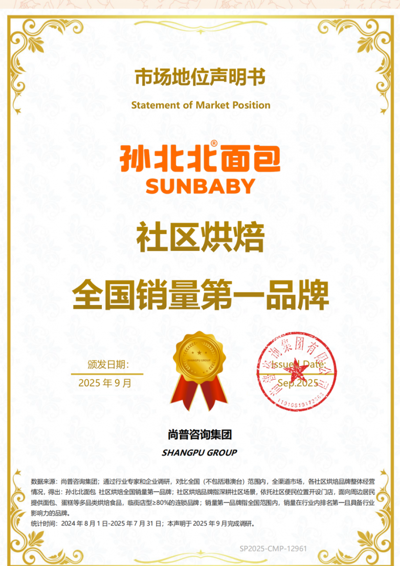 作为上海元味科技旗下核心品牌,孙北北面包精准卡位社区15分钟经济圈,三年实现300 + 门店的跨越式增长,进驻上海、深圳、南京、苏州等全国几十个核心城市,目前会员数量突破200万,服务社区家庭超过100万,此次获奖的核心逻辑,在于其构建了适配社区场景的全链路运营体系。